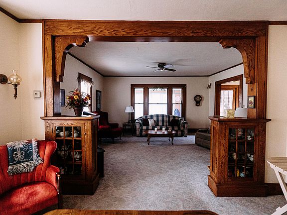 Charming home with 4 bedrooms, all with walk-in closets. One full bath and one half bath with additional plumbing in place in the basement. Original woodwork and built-ins through out the home providing lots of storage. Original hardwood flooring throughout home under the carpet and a three season porch.