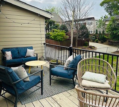 A historic craftsman style Midtown Home divided years ago into a duplex. This 2nd floor floor unit has 2 extra large bedrooms and 2 full baths and its own private deck overlooking a fenced backyard. The space has been completely remodeled recently, new bathrooms, new kitchen with stainless appliances,, and refinished hardwood floors and recent painting throughout. There is a large living room and a dining room open together as one huge space. Laundry area with washer dryer in pantry area. The whole place is bright and sunny. Pull down stairs to attic for additional storage if needed. Parking on the property in fenced yard or on street, Enjoy the most sought after area in Midtown: walking distance to Piedmont Park, the Beltline, Trader Joe's, and the Ponce City Market. Pets Allowed. Just Ask. Tenant pays for utilities. Landlord pays for lawn and landscaping maintenance and for trash removal. Call Agent for Tour by phone.