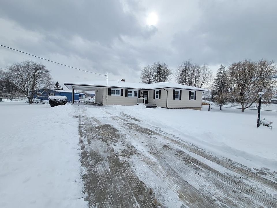Beautifully remodeled inside and out this 3 bedroom, 2 bath ranch home provides over 2400 sq ft of finished living space. Open floor plan offering kitchen/ dinning room combo with new stainless steel appliances, granite counter tops and huge island makes this the perfect space for entertaining. Large family room with an abundance of natural light and a wood burring fireplace to keep you warm during the cold winter months. 3 bedrooms including a master suite with gorgeous tile shower. Enjoy a large finished basement with endless possibilities and a laundry/mudroom room conveniently located off the1 car garage. Property also provides new roof, windows, electric, a fresh coat of paint on the outside and a concrete driveway that leads to a covered side porch. All this is situated on a quiet corner lot just outside the village on almost an acre lot. LOW TAXES, low maintenance and move in ready! Call today to make your move.