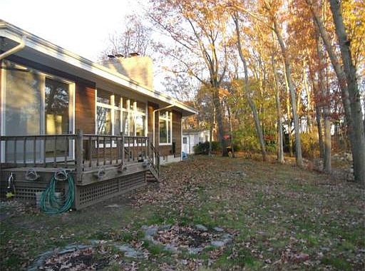 Highlands Custom built contemporaty home nestled in a very private area of the HIghlands. Oversized fireplaced livingroom with vaulted wood beamed ceilings, walls of glass and slider. Herringbone designed original oak hardwood flooring throughout. Sleek updated fully applianced kitchen with laundry on main level. Formal dining with fireplace. 3 spacious bedrooms, 2 new baths, and loads of custom closets. Full basement offers large finished space great for media room, family room, half bath which is great for guests, storage areas with built ins and cedar closet. 2 heating systems and updated electric. Owner has variance in hand for garage. Great price. Very unique offering.