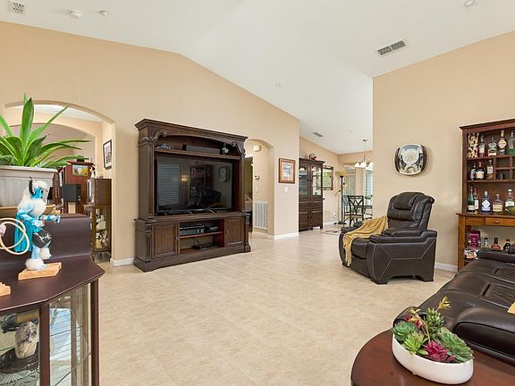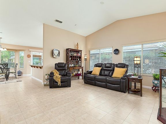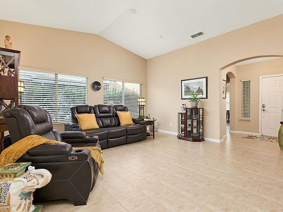What a wonderful place to settle down and enjoy life. This Pebble Beach plan has it all. Walk into the entry and realize the space in the living room! Large enough to have a grand sectional with an opposing wall large enough for a huge TV while not taking up much space in the room itself. There are two bedrooms and two bathrooms, plus a den/office/craft room. The possibilities are yours! There is a dining area with bay window, u shaped kitchen with counter area for bar stools, stainless steel appliances and upgraded cabinets Nice light colored tile flooring through majority of home with laminate wood flooring in bedrooms and den. The primary bathroom is upgraded with marble in shower and vanities in a rich yummy brown. Indoor laundry includes washer and dryer. Step outside of either patio door onto a beautifully finished patio with Aluma-wood type cover to extend usable living space. Custom concrete patio enhances the patio even more. This home in Trilogy Rio Vista is a 55+ community with many amenities. While it is built around an 18-hole golf course, HOA dues do not include golf play.