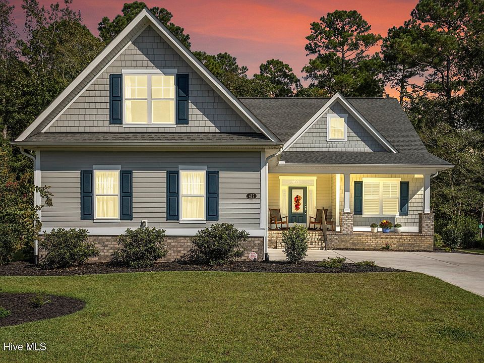 Autumn is truly a beautiful time of year. Locals might tell you it's the best season of the year. You might call 417 Autumn Chase your new home. This move in ready home was built in the summer of 2023. The 2,322 sq ft open floor plan offers peaceful spaces to relax and entertain. The heart of the home is a spacious great room, perfect for gatherings with friends and family, featuring a cozy fireplace, built-in cabinetry, and elegant coffered ceilings. The kitchen boasts Stainless Steel KitchenAid appliances and stunning salt and pepper granite countertops that set the stage for preparing your culinary creations. Flexible home design allows for multiple guest room spaces to be tailored to your talents and passion, music or art studio. The privately located primary ensuite features tray ceilings and a spa-like bathroom, creating a tranquil retreat. Soak in nature and capture a few quiet moments within the screened porch that provides a perch to sit still, listen with curiosity, and birdwatch. The beautifully landscaped yard attracts local songbirds and native wildlife, offering a seamless blend of flora and fauna. Additional highlights include a side entrance garage with an epoxy floor. Home air-conditioned comfort runs like a train because it is a Trane. This home simply feels right—schedule your tour today and experience that peaceful, easy feeling every time you return home. 417 Autumn Chase is more than just a house; it's a place where rhythm, rhyme, and harmony create the perfect setting for your next chapter. your new season starts here. Become our newest neighbor.