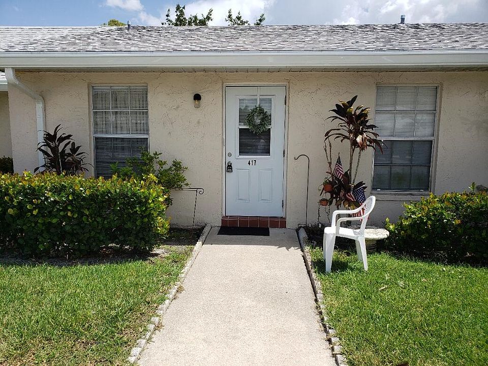 Lovely 2 bedroom 2 bath Condo/Villa. Brand new roof completed 2023.Private covered and screened lanai with extra storage. Minutes from shopping, dining, medical facilities, parks, golf and offers easy access to major airports, beautiful beaches, turnpike and 95. Active 55+ community , swimming pools, clubhouse, exercise room and so much more. Association requires credit score of 630 or higher.