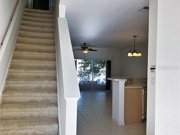 2 Bedroom 2.5 Baths, plus large second floor LOFT with large closet. (All TILE first floor) Open floor plan, kitchen includes large refrigerator with ice and water in the door. Large tile floor opens to dinette and great room. Bath on first floor. large under stair closet. 3 sliding glass windows leads to a screened porch. No rear neighbors. Your garage comes with a garage door opener. Upstairs is 2 bedrooms both with bathrooms. The master has a walk in closet. 2nd bedroom shares a bath with tub/ shower, sink and linen closet to the loft that has a closet. The loft can be used as a family Room/Study. All carpets (second floor) have been professionally cleaned as well as the tile and grout. All walls have been painted. Located Minutes from Walt Disney World, see nightly Fireworks. This home is ready for move in.