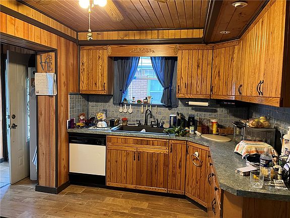 This well kept 4 bedroom 2 story colonial brick home with 2 car detached garage and shed is in great condition. The updated kitchen has custom made cupboards with a stainless steel gas stove and refrigerator and dishwasher. The large dining room leads to the full bath on the main level. The spacious living room and entryway is so inviting with the gas log fireplace and picture window. The 2nd floor boasts 4 bedrooms and a full bath. The attic is a great room for making crafts or using it as a game room. The laundry area is in the walkout basement which makes it easy to bring in the washer and dryer. Easy care back yard with an astro-turf surface and fenced in, great for your pets. The shed is handy and is in good condition. The garage is 2.5 cars wide and has an automatic door opener. A beautiful covered front porch is just right for relaxing at the end of the day. The yard is so beautiful with flowers and shrubs. This is a must see!!