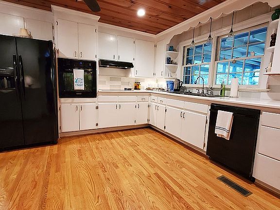 This spacious and bright home has 4 Bedrooms & 2.5 Baths down. The downstairs master suite is HUGE with a dream closet the size of a room (you have got to see this closet). Formal living room with fireplace and formal dining room with built ins. The den features heart of pine walls and has fireplace and gas logs. The kitchen sparkles with Quartz countertops, glass tile backsplash, double ovens and double cooktops, new refrigerator, & new lighting. All 3 bathrooms have been remodeled with new vanities, flooring, lighting and hardware. The large back screened porch measures 37'' x 15'' and has a sink and counter area and overlooks the private .68 acre yard. The 1 car garage has a workshop area. The home has a circular driveway in front and another drive entrance to the garage. No flood insurance required. Very well maintained with a New HVAC in 2018, vapor barrier and gutters installed, termite bond and so much more.