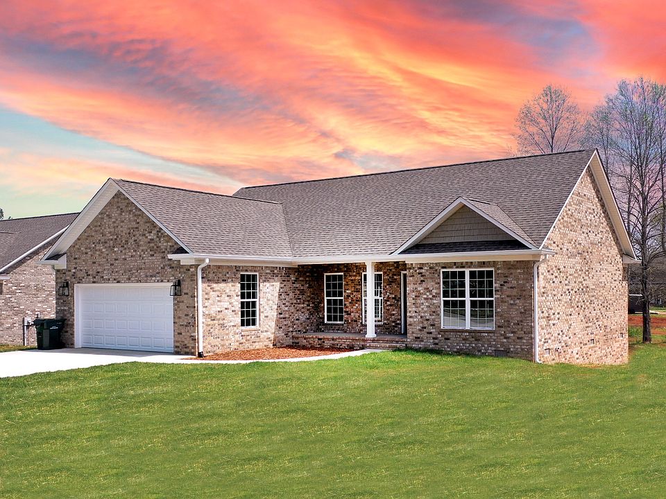Welcome to this stunning new brick home! Boasting 1,400 square feet of modern living space, this beautiful 3-bedroom, 2-bathroom residence offers both comfort and style. The spacious, open floor plan seamlessly connects the living room and kitchen, creating the perfect space for entertaining. You'll love the custom cabinets with leather granite countertops and brand-new stainless steel appliances, plus a convenient walk-in pantry.The master suite is a true retreat, featuring a generous walk-in closet, double vanities, and a luxurious walk-in tile shower. Additional highlights include a large utility room and a relaxing covered back porch, perfect for enjoying your morning coffee or evening unwind. The exterior impresses with fresh landscaping, a partially sodded yard, and a 23x21 two-car garage. Situated close to town, this home offers both convenience and charm. Don’t miss the opportunity to make this beautiful new build yours! Please note: Some outdoor photos have been virtually enhanced with artificial grass to illustrate the potential of a completed landscape. Buyers and buyers agent to verify all information.