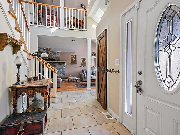Turnkey 4,300+ sq. ft. contemporary estate with a heated 8+ stall barn set on 10 private acres. The interior features a dramatic two-story entryway leading to a light-filled floor plan. The step-down living room is anchored by hardwood flooring and a wood-burning fireplace with a granite surround. The kitchen includes updated appliances, a new walk-in pantry, and sliders to an expansive deck with dual staircases to the backyard. A dining room, sunroom with pastoral views, family room, guest room, and laundry-equipped half bath complete the first floor. On the second level, the primary suite offers a private balcony, sitting area, custom wardrobe, and a full bath with a jetted tub and new double vanity. Two additional bedrooms share a Jack-and-Jill bath and one has a private balcony. A partially finished basement provides space for guests or a home gym. The property includes a heated two-car garage with a workshop and a refurbished barn with grain and tack rooms. Equestrians will enjoy fenced paddocks, an outdoor arena, and miles of private riding trails and direct access to 20+ miles of trails across thousands of acres of public land. A new, professionally engineered bridge crosses a brook leading to a horse run-in. The grounds feature a furnished off-grid cabin with a private bath, two gazebos, two stone fire pits, and an outdoor hot tub. Recent upgrades include a new roof, well pump, water filtration, and hot water heater, plus a generator hook-up and whole-house AC. This estate offers complete privacy with no visible neighbors, yet remains an easy commute to Concord, Manchester, Portsmouth, and Boston.