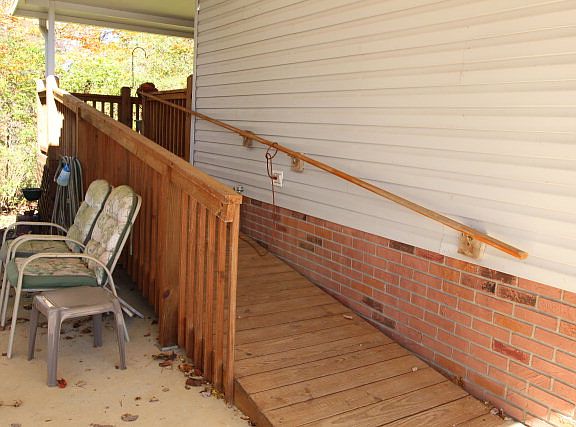 Own this lovely home in Carolina Village, an exclusive 55+ adult & gated mobile home park in Franklin NC. 3 bedroom, 2 bath, with a gorgeous long range mountain view, dual carport, handicap ramp, 2 decks and paved to the door. This home is on a rented lot that can be purchased. Live the good life in this spacious and well kept home.