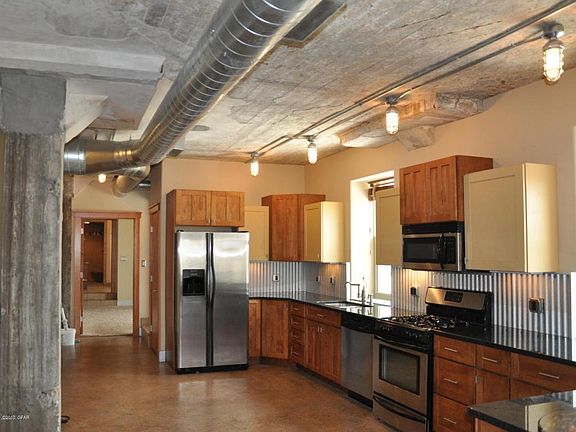 Big city living in downtown Great Falls. Industrial like open floor plan with stained concrete floors, exposed heat ducts and eye catching light fixtures is a must see. Local coffee shops, restaurants, a brewery, and downtown shopping are just a few steps away. Kitchen with granite counter tops and stainless steel appliances. Master bath with jetted tub.