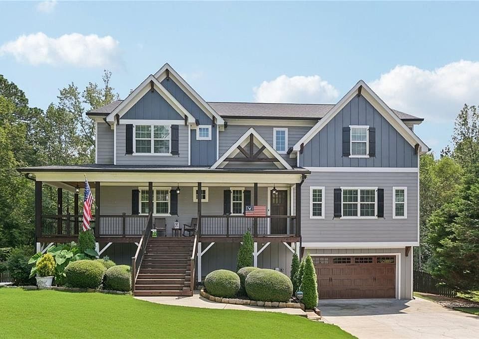 Built in 2020, this custom home offers thoughtful design and attention to detail at every turn. From the moment you enter the foyer, the soaring two-story great room with its sun-filled windows, stone fireplace with gas logs, and durable Mohawk hardwood floors set the tone for something truly special. The main level features 8-foot doors for a dramatic touch, a spacious gourmet kitchen with stainless steel appliances, built-in microwave in the island, exterior-vented range, tile backsplash, and a walk-in pantry with custom wood shelving. The dining area flows seamlessly into the kitchen, and a cleverly designed workstation can be opened or hidden away as needed. The owner’s suite is located on the main floor, highlighted by a shiplap ceiling, private deck access, and a spa-like bath with a granite double vanity, soaking tub, dual-head shower, and a large walk-in closet. A convenient main-level laundry room completes the space. Upstairs, you’ll find two oversized bedroom suites—each with its own living area and private bath—perfect for guests or family. The finished terrace level provides a flexible recreation space ideal for a gym, office, or playroom, plus an oversized two-car garage. Enjoy outdoor living on the covered and sunning decks overlooking your private wooded and fenced backyard. With the septic system located in the front, the backyard is ready for a future pool or entertainment area. Recent upgrades include a 225 sq. ft. sunroom, regrading, new backyard features, and front yard irrigation. Set on nearly an acre (.91 acres), this home stands out with its unique floor plan and custom features rarely found at this price point.