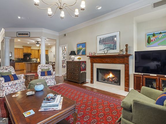 Beautifully curated, character-filled condo in one of Decatur's most desirable communities. This first-floor home sits one level above ground, offering elevated privacy, abundant natural light, and the convenience of main-level living. Thoughtful architectural details-10' ceilings, stained-in-place hardwood floors, plantation shutters, new windows (2025), and classic millwork-create a warm, welcoming feel that's perfect for simplifying without sacrificing quality or style. The fireside living room opens to a spacious covered patio, creating an easy indoor-outdoor flow that lives like a much larger home. The flexible dining room with tray ceiling functions equally well as a home office or library, giving you the ability to right-size your spaces while keeping the rooms you still love to use. The updated kitchen includes 2024 stainless appliances, granite counters and backsplash, a gas range with hood, an oversized island with seating, built-in wine rack, a walk-in pantry, and ample cabinetry with Rev-A-Shelf systems-ideal for staying organized with ease. A keeping room with a decorative fireplace and custom built-ins offers a comfortable additional living area, perfect for morning coffee, reading, or intimate gatherings. The generous primary suite features a trey ceiling, seating area, California Closet system, and a renovated bathroom with a quartz double vanity, upgraded lighting, and a newly refinished shower with upgraded tile and plumbing fixtures. An additional storage closet can be converted into a second clothes closet for even more wardrobe space. The secondary suite includes a custom Murphy bed with an integrated desk and storage, a California Closet system, and a spacious hall bath with linen storage-perfect for guests without giving up a dedicated office or hobby room. Practical upgrades include a true laundry room with cabinetry, upgraded lighting, enhanced built-ins, a Phantom screen, and two deeded covered parking spaces. Residents enjoy a swimming pool, fitness center, club room, media room, library, and dog park, along with an active HOA offering book clubs, Mahjong, Bunco, weekly happy hours, and more-ideal for those seeking connection and community with low-maintenance living. Exceptional location close to the Decatur Square, Glenlake Park, restaurants, shops, walking paths, and MARTA. A rare opportunity to enjoy simplified, well-appointed living in the heart of Intown Decatur.