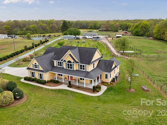 Horses or Hobbies? Easy access to I-485; 10 mins to Mint Hill, 20 mins to Waverly. Marty Griffin, custom-built farmhouse.Fenced pastures, run-in shelters, free range chicken yard w/coops, storage/workshop & 6-stall barn w/auto waterers, mats, & fans.Hay loft, concrete center aisle, tack rm, lounge & auto fly mist. Lighted 90’ x 170’ arena. Orchard/garden. New roof, garage w/drop zone & full bath. Sealed crawl space, tankless H2O heater, attic fan. HW floors in living areas, slate floor in foyer & laundry, solid wood trim & doors, Pella windows, large laundry rm. Chef's kitchen w/hickory cabinets, granite counters, pantry & SS appliances, double oven & warming drawer. Great rm w/rock FP. Primary suite w/tray ceiling & access to porches. Bath w/dual vanity, jetted tub, & walk-in closet. 2nd level offers 3 bedrms & full bath, loft area, bonus rm, & walk-in attic. Indian Trail was named one of the best places to live by Money Magazine. A rare find. Brochure Available. See MLS 3878393