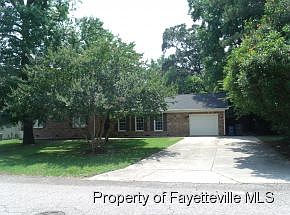 4 Bedroom, 2 Bathroom Brick Ranch, minutes from Ft. Bragg and central shopping. Home has been well kept. Huge Great Room with Fireplace, Formal Dining Room, Kitchen with White Cabinets,Appliances (Refrigerator, dishwasher, and range) and vinyl flooring. Bedrooms are spacious, including Master with Walk In Closet and sit down vanity area with sink. Screened in Patio off the back for relaxing. Backyard fenced. Roof and Heat/Air Unit installed in 2013.
