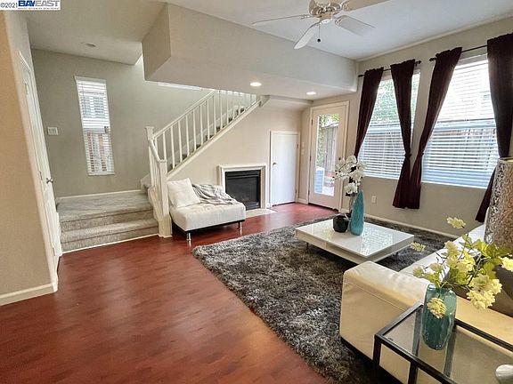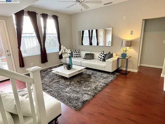 Wonderful modern detached home in very convenient location. One bedroom, bathroom, and family room on ground floor. Home office alcove with built-in desk and cabinets. Beautiful hardwood floors on ground and mid level. Large open kitchen with brand new stove and garbage disposal. Very nice balcony that is perfect for relaxing and entertaining guests. Lots of windows that bring in natural light. Laundry room with washer and dryer included. Low maintenance backyard with beautiful rose bush. Very convenient location that is walking distance to shopping. Easy access to Freeway and Crow Canyon Road.