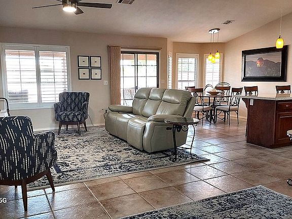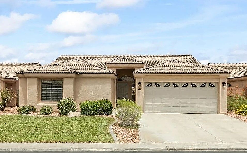 Enjoy the views of bluffs, mesas, and mountains from the elevated tiled patio and backyard that is truly maintenance free. The covered patio spans the width of the home with plenty of room for entertaining and relaxing. The front yard, maintained by the HOA, has recently had all new irrigation lines installed and new plants.