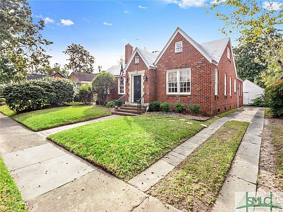 Classic 1939 Ardsley Park brick bungalow with modern updates and loads of charm! Well-maintained home boasts three spacious bedrooms with custom window treatments and extra closet space, a rare find in this area. Bright refinished hardwood floors throughout most of the house, with new tile in kitchen. Kitchen was remodeled in 2016 with Italian marble counter tops, all new appliances, oversized farm sink, custom banquette and lovely window treatments. Sunny living room with wood burning fireplace and built in bookcase, large dining room and bright sun porch complete the common living spaces. Orginal bathrooms, telephone nook, metal roof and stunning arches lend to the vintage charm of this beautiful home. Extremely large walk-up attic can serve as additional storage or be a potential added living space. Outdoor porch off sun room leads to spacious private fenced in backyard, perfect for entertaining. Driveway parking with large cooled storage building. Short walk to Hull Park.
