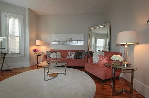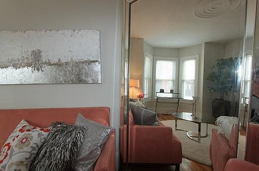 APRIL 1 MOVE IN. Lovely, SUNNY 2 bed 1 bath. Quiet East Side Street. Gorgeous honey colored antique wide pine floors. Nice size bedrooms. Eat in kitchen, Private back patio. Central AC. Extra Storage space. Fresh paint. Laundry in the building. Private Entrance. Close to parks, beaches, Broadway shops, and bus-lines to downtown. Move in April 1.