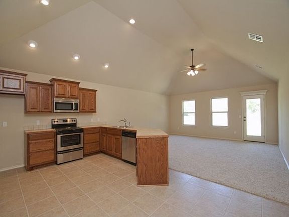 New const. Living open to kitchen w/eating area, inside utility, large master w/walk-in closet, ceramic tile entry, kit, baths & util; covered porch & patio, sodded yard, huge back treed yard.