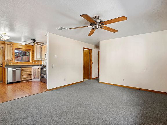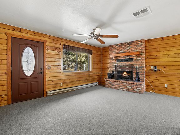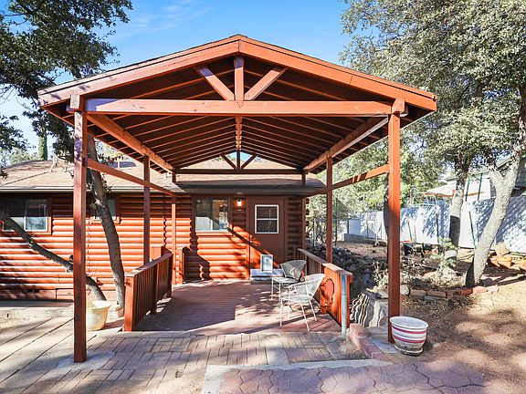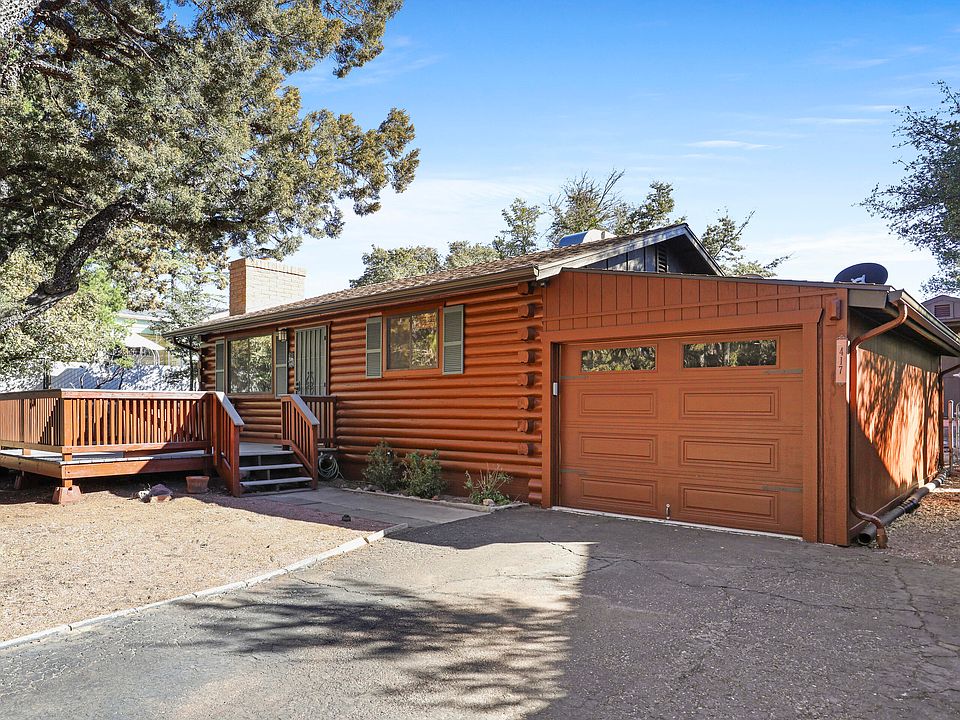 Cozy log cabin in the heart of Payson has modern touches and a tranquil setting. The living room has a wood burning fireplace, newly installed carpet. Eat-In kitchen offers beautiful wood cabinetry, stainless steel refrigerator, electric oven, dishwasher and built in microwave. There are two bedrooms and one full bathroom and a laundry area which includes a washer and dryer. You will appreciate the backyard with covered back deck, fully fenced and with a 12 x 8 Shed. This charming cabin is all electric with central heating and cooling. One car garage includes an additional refrigerator and garage door opener. Large front deck to enjoy outdoor living. Truly, a move-in ready place to call home.