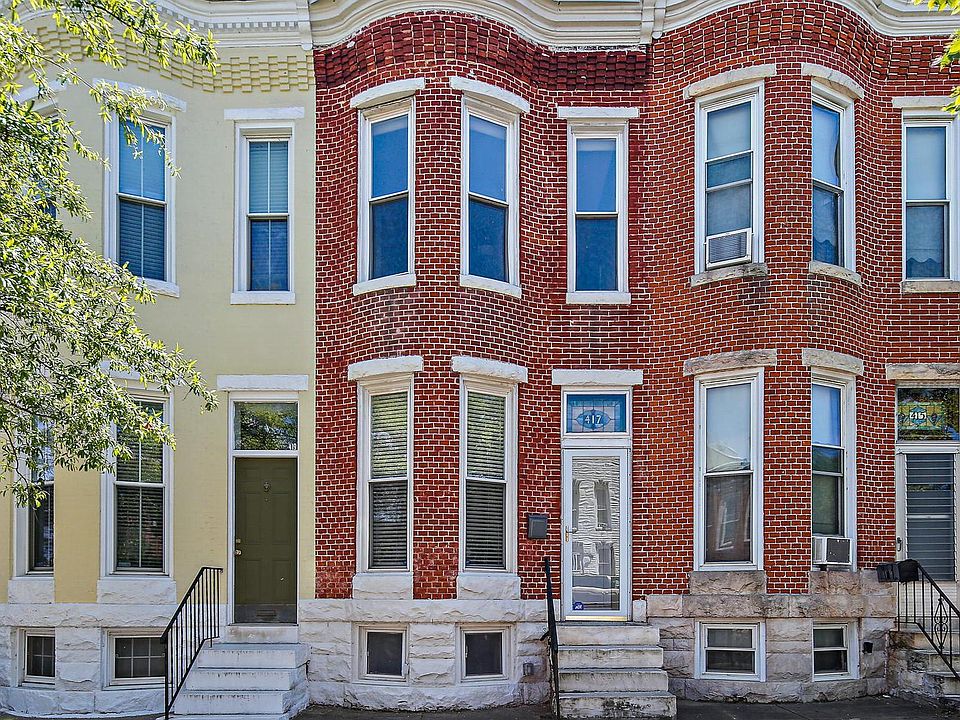 **Offer Deadline set for Thursday July 11th at 6pm** Welcome to 417 East Fort Avenue in Riverside! Located just one block from the beautiful Riverside Park, this 13-foot-wide rowhome features 2 large bedrooms, 2.5 baths, and 1 car parking pad! As you enter the home you are welcomed into a spacious living room with tall ceilings, exposed brick, and original hardwood floors. Just past the living room is a bonus space that could be used as a home office space or play area. The inviting dining room is adjacent to the kitchen, offering stainless steel appliances, granite countertops, and plenty of storage. You will discover a convenient half bath/laundry room at the back of the main level. Upstairs you find two oversized bedrooms each with an attached bath. The primary bedroom is massive and is flooded with light thanks to 3 big windows and vaulted ceilings. The attached primary bathroom includes a jetted tub and separate shower. The rear bedroom suite offers French doors that could lead out to your future deck(s). Prior to replacing the roof (2024), this home had a rooftop deck that provided incredible views of the skyline, harbor, and Domino Sugar sign. A new deck could easily be added by the new owner down the road for their enjoyment while adding value to their home. The full-size, unfinished basement serves as a work/utility area with ample space for storage. New furnace (2023). Never worry about parking again, this home offers off-street parking for 1 car on a wide alley. Showings start July 9th!
