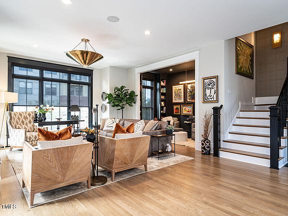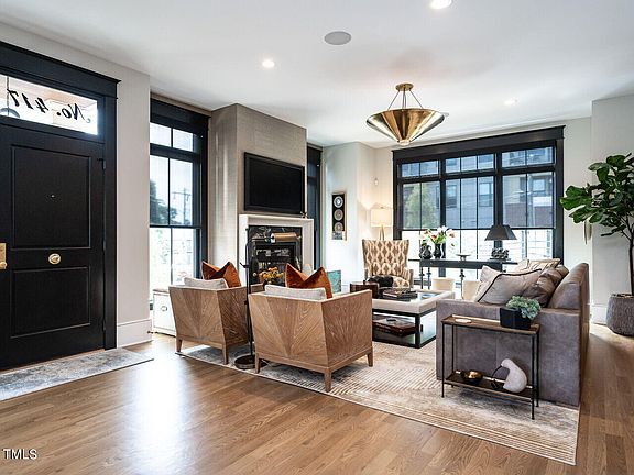 Welcome to 417 E. Hargett, urban living with a modern aesthetic that exudes elegance and functionality. This sunny end unit with abundant natural light, crafted by Greg Paul Builders, features recent updates in excess of $350K that elevate this home to a higher level of luxury. Three outdoor living spaces, including a 920 sq. foot rooftop patio for entertaining and enjoying breathtaking sunset views over the city of Raleigh. Immerse yourself in thoughtfully designed and curated living spaces. The gourmet kitchen is fully equipped with Viking appliances, quartzite counters, custom Coppersmith range hood, pop-up outlets, newly added beverage area with a built-in Miele coffee maker, plentiful cabinetry, and a new dry bar with a wine refrigerator. Library on the main floor for avid readers or those seeking a cozy respite! Flex room/office with a built-in desk on the lower level for remote workers. Wet bar with a Smart Living and Technology soft close top sink that when closed, functions as serving space. Spacious primary bedroom with dual closets reimagined with Closets By Design built-ins, including cedar lined drawers. Updated primary bath with new Delta and Newport Brass plumbing fixtures. EV charging outlet and a Crestron home entertainment system for modern living. Motorized & programmable window treatments by Hunter Douglas and Graber. This property perfectly balances contemporary comfort with elegant sophistication. Don't miss this opportunity to escape the ordinary and make 417 E. Hargett your new abode.