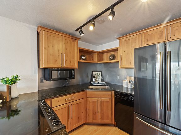 This inviting end unit stands out with its two spacious balconies offering panoramic views of both the city skyline and serene mountain landscapes, perfect for enjoying both sunrise and sunset. Inside, the residence boasts wood flooring, granite countertops, and a convenient breakfast bar, alongside practical walk-in closets. Located within walking distance to the bustling downtown area, the homeowner's association fee conveniently covers all utilities including electric, water, heat, trash, insurance, and maintenance. The building itself is equipped with a variety of amenities such as a fitness room, sauna, outdoor cooking area, business center, 24-hour security, a recreation room featuring a pool table and TV, and secured entry, ensuring both comfort and peace of mind. Additionally, the property comes with two parking spaces in a gated lot, enhancing its appeal for those seeking a secure and well-appointed living space.
