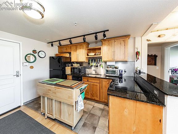 FANTASTIC FULLY FURNISHED CITYWALK CORNER UNIT GEM WITH BEAUTIFUL MOUNTAIN AND CITY VIEWS AWAITS YOU! CityWalk is located within walking distance of Downtown Colorado Springs, Shooks Run trail, restaurants, pubs/breweries, cultural events, shopping, post office, library, parks, public transportation and so much more. Enjoy a maintenance-free, lock-and-leave complex with newly updated fitness center w/sauna, recreation room w/pool table and a lovely patio with seating and BBQ grill. Enjoy sitting out on your covered 7x40 patio with stunning views of Pikes Peak, our beautiful mountains and the city. Step inside this bright and sunny condo to a modernized kitchen space with granite countertops, stylish wood cabinets, stainless steel backsplash, newer refrigerator, an island and kitchen pantry. The wonderful open floor plan has a large dining area plus a cozy living room with gorgeous views. Master bedroom has a large walk-in closet and extra storage can be found in the hallway. Both bedrooms have sliding doors leading out to the large deck. The main bathroom is handicapped accessible with a custom barn door. The second full bathroom also has a handcrafted barn door. This particular unit has TWO PARKING SPACES in the gated parking lot to the north of the complex. All appliances are included. HOA fee includes all utilities and amenities!