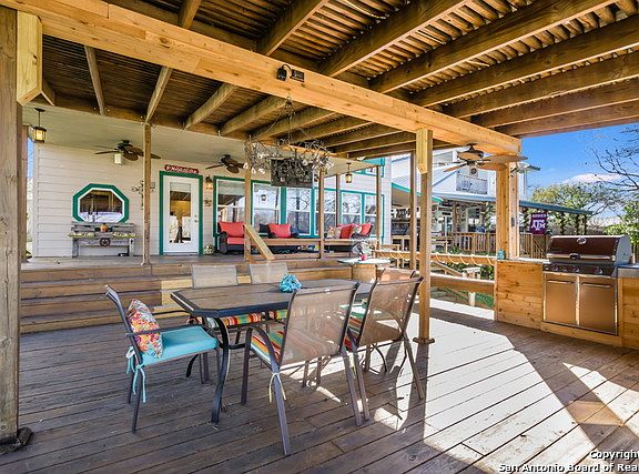 Prime improved waterfront on one of the clearest sections of Lake Dunlap. 3 tiered decks great for beautiful lake views & entertaining. Fully remodeled 2015 open concept kitchen shows off the beautiful views of lake. Master bedroom with French doors leading to a private balcony overlooking the lake. Outdoor kitchen with granite countertops, Weber grill, refrigerator, & built in sink that were all installed in 2015. Boat house, underwater fishing lights, 2015 remodeled guest bathrooms, oversized 3 car garage