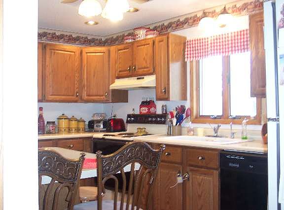 VERY NICE REMODELED RANCH HOME. OAK KITCHEN WITH BUILT-IN BREAKFAST BAR & NEWER CERAMIC TILE FLOORING, FAMILY ROOM WITH VAULTED CEILINGS & BUILT-IN ENTERTAINMENT CENTER, PLUS FORMAL LIVING ROOM. 3 NICE SIZE BEDROOMS--MASTER BEDROOM HAS BATH & LARGE WALK-IN CLOSET. LAUNDRY IS ON MAIN FLOOR OFF MASTER BEDROOM IN LARGE CLOSET. (NOTE: MASTER BEDROOM HAS ELECTRIC BASEBOARD HEAT). NICE LANDSCAPING WITH LARGE BACKYARD--ROOM FOR A GARDEN--STORAGE SHED. DECK IS 4-5 YEARS OLD--TREATED WOOD. WATER SOFTENER 2 YEARS OLD. ROOF APPROXIMATELY 8-10 YEARS OLD--COMPLETE TEAR OFF. SIDING 8-10 YEARS OLD. FURNACE & WATER HEATER APPROXIMATELY 10-15 YEARS OLD. AIR CONDITIONER APPROXIMATELY 8-10 YEARS OLD.