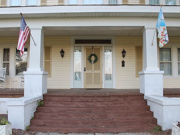 Built Circa 1913, this gorgeous two story home is full of charm and character. It features 5 bed, 3 1/2 baths and is situated on a beautiful 2.8 Acre lot. Downstairs you'll find a cozy family room with built ins, updated kitchen with new cabinets & solid surface countertops, adjoining dining room with fireplace, extra wide foyer, living room with fireplace, laundry room, 1/2 bath and primary bedroom with fireplace & ensuite bath. Upstairs you'll find 4 additional bedrooms, one with a private attached bath. The other 3 bedrooms all have fireplaces & share a 3rd full bath. The former "sleeping porch" upstairs would make a great office. There are hardwood floors, high ceilings, beautiful pocket doors and a unique double sided staircase. Outside you'll find a paved drive, attached carport, storage room, shed & deck. Step back in time with the perfect blend of history and modern conveniences.