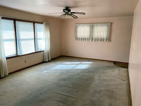 Well cared for 2BR 2BA home with carpet on a corner lot. Home needs updates. Has CH/A, a partial unfinished basement, garden spot, and outside storage building.