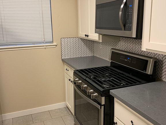 Freshly painted home with quartz countertops in the kitchen and bathrooms. two car covered parking, fenced & gated outside patio. stainless steel appliances to include five burner gas range, dishwasher microwave oven and refrigerator There is no smoking on the property or inside the apartment. That is a lease termination offense. Landlord is responsible for water and trash. Pick up. The tenant is responsible for gas and electric.