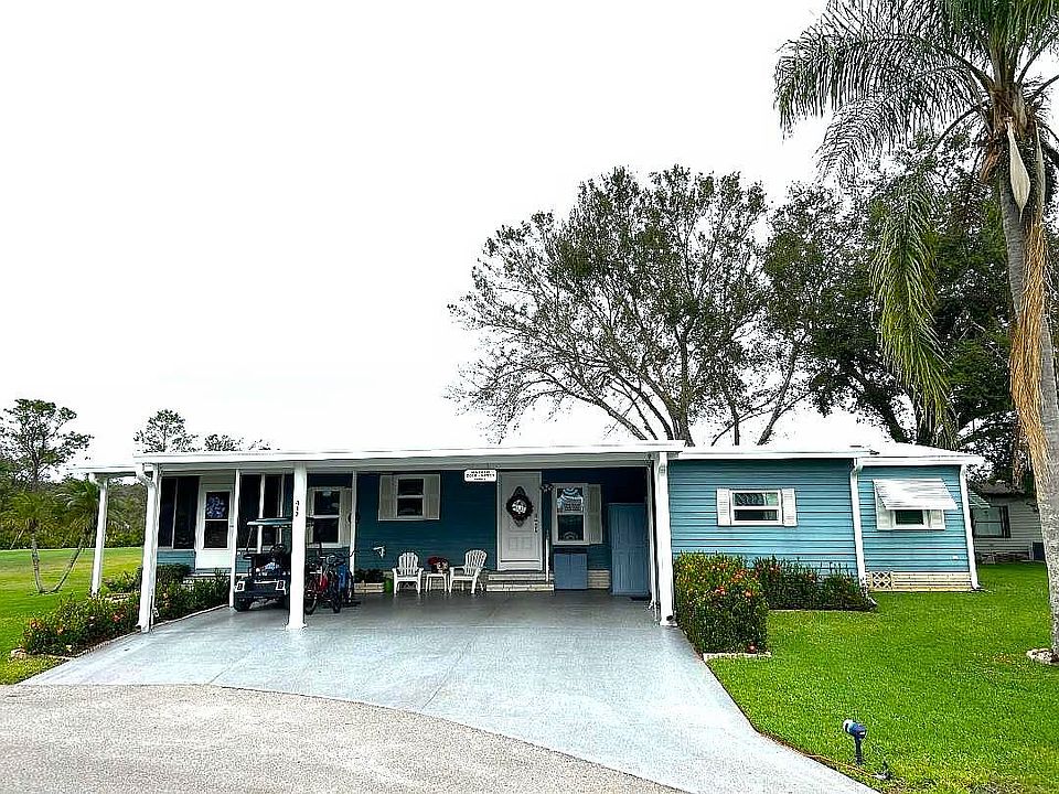 2BR 2BA 1456 sq ft home. plus an additional large Florida sun room. Fully furnished. Turn key. On The 17th tee. Immaculately kept. new paint, new sinks and faucets, new toilets, Extra-large closets, New Mini split AC in Sun Room, New appliances newer washer and dryer, New double pane windows throughout, Double covered carport. New metal roof on carport large lot on quiet cul de sac. Beautifully landscaped. New oversized AC in 2017. New Rubber roof. New hot water heater, painted driveway, Loads of cabinets and built ins. Extra large shed