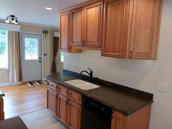 Bigger than it looks, this classic Ranch has a modern feel with a new roof, fresh paint inside and out, new furnace, new water heater, partially finished lower level. The kitchen was remodeled with new cabinets, Corian counters and flooring. The bath has been updated with tile surround and tile flooring. Hardwood floors were refinished. Enjoy your morning coffee while sitting in the gorgeous sun room overlooking the large backyard with mature trees. Home is in a quiet neighborhood, just a block away from school and hospital.