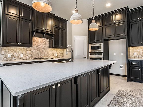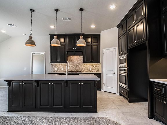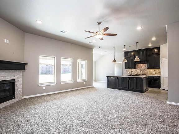 This Augustine Half Bath floor plan includes 2,125 Sq Ft of total living space, which includes 1,900 Sq Ft of indoor living space and 225 Sq Ft of outdoor living space. There is also a 570 Sq Ft, three car garage, that has a storm shelter included! Home has 4 bedrooms or optional study, 2 full bath, and a half bath. Living area includes a gorgeous corner fireplace with stack stone, 3 large windows, great source of natural light, and a barndoor! Kitchen has an island with a stainless steel farm sink, 3CM quartz counter tops, stainless steel appliances, decorative tile back splash, and a corner pantry. Master suite features a boxed ceiling detail with crown molding and bathroom featuring separate vanities, large walk in shower, whirlpool tub and spacious walk in closet! Master closet has a connection to the utility room! The exterior of this house has fully sodded front and back yards with in ground sprinkler systems and landscaped flower beds. Covered back patio with outdoor fireplace, as well as an included outdoor fireplace. Home has Rinnai Tankless water heater, whole home air purification system, R-44 insulation and Solarboards, insuring energy efficiency.