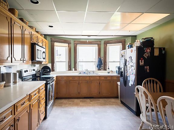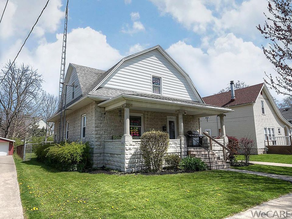 Lots of traditional woodwork in this home with large entry way, beautiful banister leading to a landing that would be great for a work at home office space! 3 bedrooms on second floor plus bathroom! Main floor features a huge kitchen, bonus room that could be a potential 4th bedroom, dining room, home schooling area or gaming room for kids. Large laundry room / mud room comes in from detached garage. Basement offers room for storage or storm shelter. Large back yard is fenced and perfect spot for summer fun!