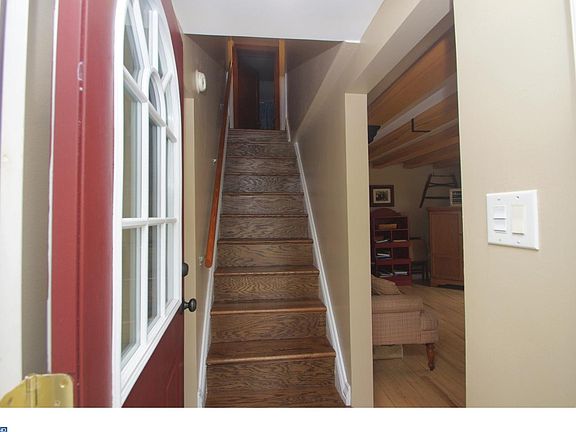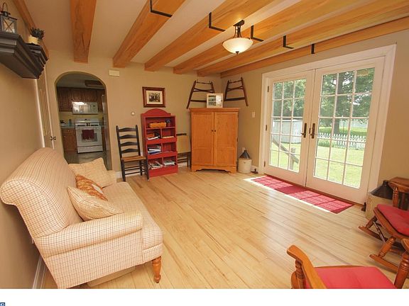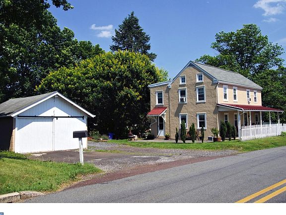 This Harleysville farmhouse style home, blends old and new craftsmanship with a bright and welcoming front porch, side paver patio, partially fenced yard, detached garage and abundance of charm! Enter through the side door into the mudroom with closets and room for storage benches. Flow into the large eat-in kitchen with neutral oak cabinets, built-in corner hutch, pantry closet and large bay window. The dining room has exposed beam ceiling, hardwood floors and a large atrium door leading to the backyard. The living room has neutral carpet and four large windows. Up the hardwood stairs is the full bathroom with granite countertop, under-mount sink, tile flooring, tub/shower combo. The spacious master bedroom has walk-up attic access and spacious walk-in closet/dressing room. The back bedroom has hardwood floors and the third bedroom has two closets and plenty of space for a sitting area. This home features new windows, broad trim/door & window framing, attractive/neutral paint/decor throughout. Convenient guest parking across the street at Kulp Road Pond Park. A tranquil setting near the Harleysville Community Center Park/Indian Valley Middle School/YMCA/Rt 63 Harleysville. Pride in home ownership is displayed throughout this nicely decorated single family home!