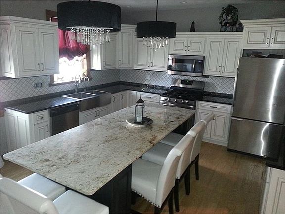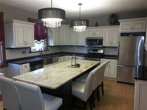 Executive victorian home nestled in Ellwood City's 4th Ward on a double lot! New addition and remodeling done in 2000! Huge living room with hardwood floors, log burning fireplace and private den area in turret! Gourmet kitchen with granite counter tops and seating around granite kitchen island! Deep double stainless sink with Kenetico water filtration system! Built in glass door china cupboard. Dining room with decorative fireplace. 1st floor laundry room with door leading to rear trek deck. Master suite with 2 large walk in closets and private sitting area in turret! Master bath has claw foot tub and separate shower. Basement has a partially finished family room leading to a rear patio. Brick 2 car detached garage with walk up 2nd floor that's great for ample storage or workshop! Beautifully landscaped site!