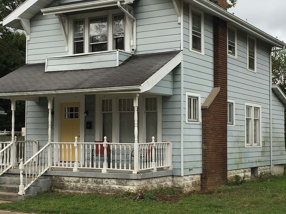 A kit home delivered from Bay City, Michigan. This home was manufactured by Aladdin Homes. It features many original craftsman features such as fireplace, trim, doors, and windows.