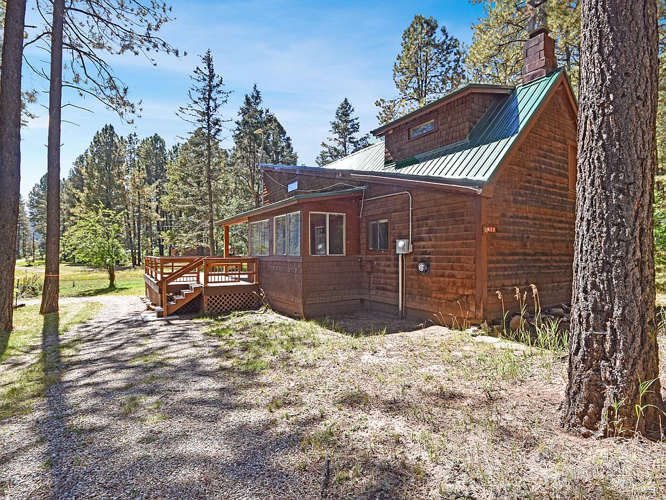 Nice little get away cabin right in the middle of the highly desirable Horseshoe Springs Subdivision! Surrounded by towering pines, this cozy, comfortable three-bedroom, one bath home is MOVE-IN READY. Updated deck to enjoy the crisp mountain air year-round. Easy walk to the San Antonio River for fishing! Detached workshop has heat, power and room for all your toys and tools. Restrictive covenants keep Horseshoe Springs lovely. This one is DIVINE!!