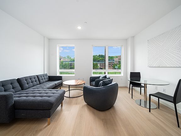 Experience luxury living in Hoboken with this brand-new construction top floor with NYC views! Featuring an elevator that takes you directly to your floor. This 2-bedroom, 2-bathroom apartment showcases modern finishes and top-of-the-line appliances. As you enter, you'll be greeted by beautiful hardwood floors that lead to a spacious open living area. The kitchen is expansive, featuring a center island with a sink. The main bedroom offers ample closet space and an en-suite bathroom. Additional highlights include wide plank hardwood floors throughout, abundant natural light, central A/C, and an in-unit washer/dryer. Enjoy the common patio area, perfect for year-round relaxation. Conveniently located near parks, shops, restaurants, and the 2nd St light rail station for easy NYC commuting. Be the first living in this new home! 13-18 month term lease for $3,875 per month (1 month free) or 12-24 month lease at $4,100 per month