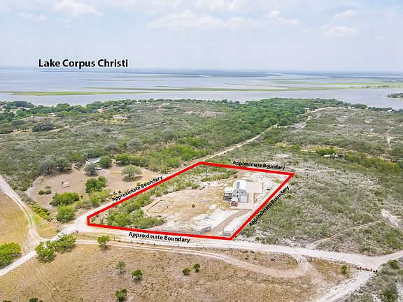 Unique property! Built like a fortress on a hill. Concrete block construction with commanding views of Lake Corpus Christi and the surrounding countryside. The sunsets will blow you away. Versatile multi level floorplan. Existing living space offers all of the modern desired amenities in 3 bedroom 3 bath layout. Install one quick easy wall and you have a 4 bedroom. Huge living room, media room, laundry chutes, granite, stainless appliances as well. The first floor down stairs is currently set up as bonus room/ office/ utility/ storage room/ garage but the possibilities are endless. Half of this downstairs is actually a pull thru garage( over 1500 sq ft). Truly a unique build, one has to see it in person to grasp it! The existing AC, well and septic are sized to handle the potential expansions. Outside is a 60x60 concrete pad complete with multiple full service RV hookups. 1000 gallon buried propane tank, solar panel system, water filtration system. Community boat ramp on the lake!