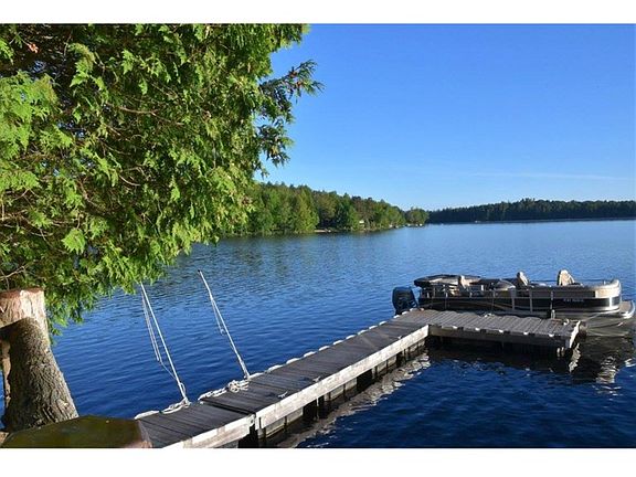 Literally sitting on the water, this Adirondack style cabin offers privacy and a very warm feel. The main cabin has two bedrooms, an open kitchen/living/dining, plus a sitting area with a beautiful stone fireplace. The outdoor deck has cedar rails and twig work, and leads to the new dock system. The property also includes a one room guest cottage with its own bath, and large stone fireplace. Everything was done in the classic Adirondack style. Located at the end of Lake Simond with miles of boating available.