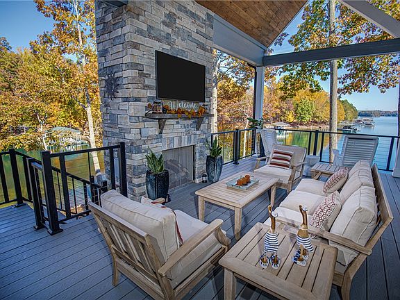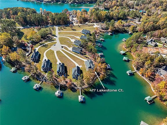 417 Lakestone Ct: Built in 2019, and meticulously cared for since, this home is better than new and on a stunning waterfront lot. The indoor and outdoor living space screams LAKE and FUN as every single room in the home has a view of Lake Keowee! Entertaining friends and family is a blast with the huge covered decks, patio space and outdoor putting green overlooking the blue waters of Lake Keowee. This nearly flat waterfront lot has long lake views, approximately 223' of rip-rap waterfront, deep water and the dock is just steps from the main and lower level of the home--the owners love that the dock is so close to the home, tucked into the cove to avoid waves, provides safe swimming/floating, and isn't in the main view looking out to big water. The main level is ideal for primary or second home living with the owner's suite and an office-high speed internet available so working from home is an option. The living/dining/kitchen are open and comfortable for large or small gatherings. The covered deck provides a ton of additional living/dining space (big views are east so the deck space is shaded in the afternoon and there's always nice breeze), watching tv or relaxing by the fire on those cooler winter nights. The upstairs has two bedrooms and a large family room that the current owners use for extra bunk beds and the grandkids living room. The lower level has a great lakeside guest suite, tons of storage, recreation room and beautiful bar with refrigerator and ice maker. The natural light and lake views constantly remind you why you chose this place to be home! Some additional information: The flex room in lower level (currently used as fitness room) could become a bunk room and door cut into the large walk-in closet of the guest suite if that better suited your needs. The garage has been wired for 220v should you want to charge an electric car. Dock has power and loft storage. Natural gas line run for grill on main level porch. HOA fee is $350/month and includes lawn service, irrigation and trash service. Short term rentals permitted under current restrictions (no owners currently renting, however).