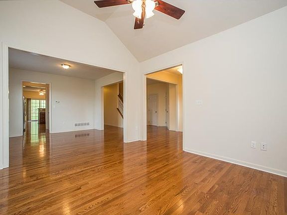 FIRST FLOOR MASTER SUITE!!! One-level living at it's best. Large master bedroom with large master bathroom. His & her sinks. Soaking tub. Shower. Ceramic tile floor. Walk-in closet. So many upgrades other similar homes do not have. Beautiful NEW hardwood floors throughout the first floor. Fantastic open floor plan with vaulted ceilings & wonderful natural sunlight. You will absolutely LOVE the light, bright, open feeling throughout the home. GORGEOUS eat-in kitchen with new granite counter top & tile back splash. Plenty of cabinets & counter top space. New stove & refrigerator. Large pantry. Large first-floor family room with vaulted ceiling off kitchen area. Beautiful masonry fireplace equipped with gas line. Sliding door from kitchen area to large deck. Great for meals, entertaining & just relaxing. Steps to large-level yard. Two bedrooms with large closets, loft area & second full bath upstairs. HUGE basement with rough-ins for a full bath. High ceiling. Future gamrm, home gym.