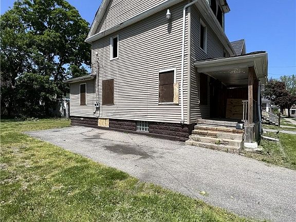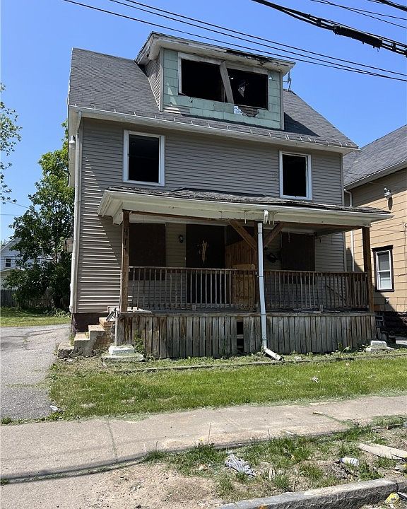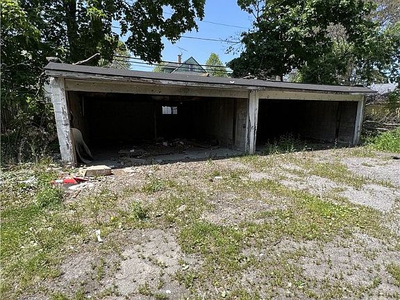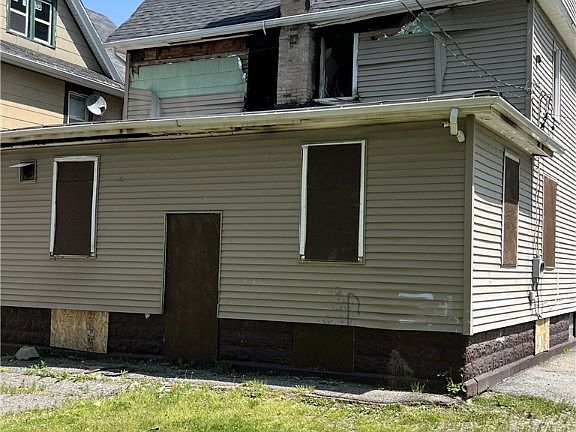 Fire Damage. Total renovation needed. Exterior is salvageable, and has vinyl siding. Interior is a complete burn out. 2 unit property. Detached, huge 4 car garage! Handyman special with a lot of potential here!