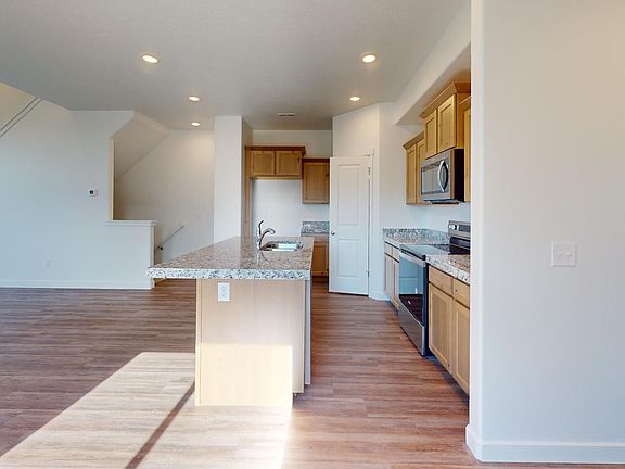 These brand-new townhomes feature a spacious, open-concept Great Room with a kitchen that boasts granite countertops, ample storage, and brand-new stainless steel appliances, including a side-by-side refrigerator. The living and dining areas are expansive, with large windows that provide beautiful views. Thoughtfully designed for privacy, they have 4 bedrooms and 4 bathrooms spread across separate floors. The first floor includes a private bedroom and bath, plus a two-car garage with a smart opener. The main living area and an additional bedroom and bath are on the second floor, while the final two bedrooms and bathrooms are on the top floor.