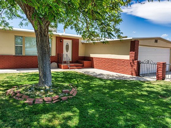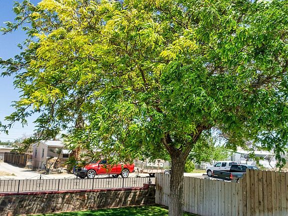 As you drive up to this 1290 sq ft home you will notice the wrought iron front fence with grass, large tree &new paint on the brick and stoop. This home has been renovated & expanded. NEW interior paint & the laminate flooring show pride of ownership. No popcorn ceilings, new sprinkler timer, water heater replaced in 2017 & ceiling fans are welcome amenities. Just off the hall is the master bedroom & private bath. The second bedroom has a large walk-in closet & the third bedroom is oversized with a wall of bookcases. The full guest bath also sports ceramic tile & a new tub. The kitchen has tile counters & floor, gas range, stainless sink, refrigerator, new faucet track lights & a solar tube. Just past the kitchen is the dining room with its view of the large back yard. Continue past the inside laundry area & into the covered patio & hardscaped rear yard with large parking area. There is a large wood storage building & smaller shed. The real bonus is the NEW TPO roof! TPO stands for thermoplastic polyolefin, which is a type of rubber. The heater & the MasterCool are both ducted. An attached two-car garage with roll-up door & auto opener complete the picture.