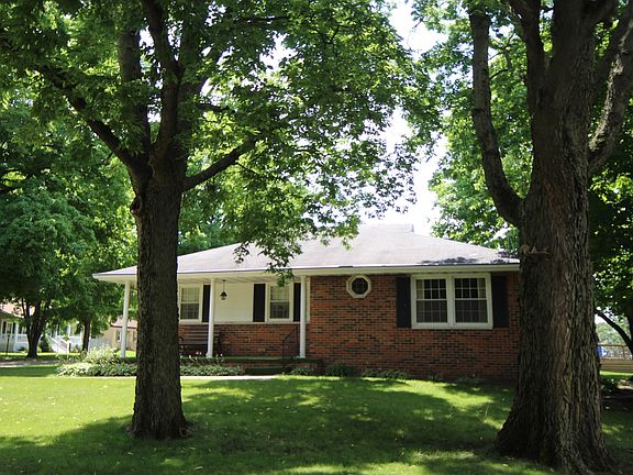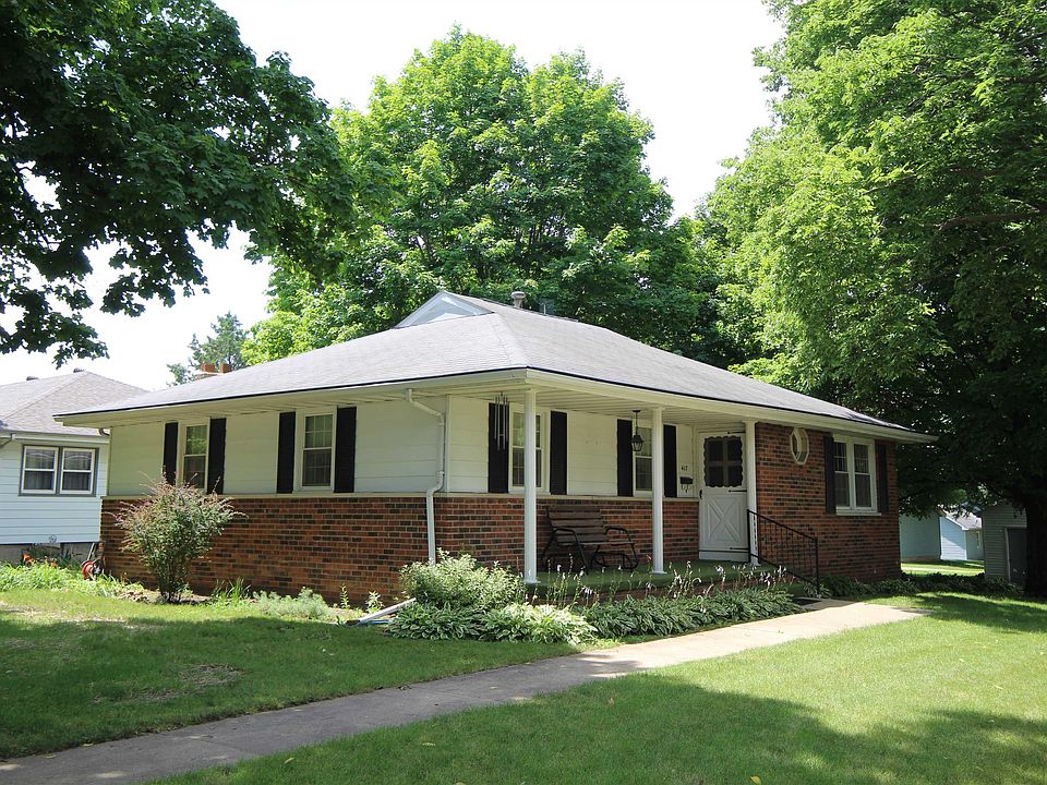 Enjoy small town living! Well maintained, one owner 3BR ranch built in 1974 by Wes Wenger. Situated on a corner lot with a 3 stall detached garage. Updated water heater, Trane furnace & Trane central air in 2002. New 5 seamless gutters & downspouts on house & garage 1996. Gutter Helmets installed 2008. Vinyl replacement windows with transferable warranty 2007. New sewer line 2021. Spacious living room & eat-in kitchen. All 3 bedrooms offer lighted double closets. Great potential to finish off the basement. Charming 19 x 5 covered front porch. The 3 stall garage features new vinyl siding, windows & entry door 2017. Located 2 blocks from school and 1 block from the public pool. Home sold as is but includes a premium home warranty!